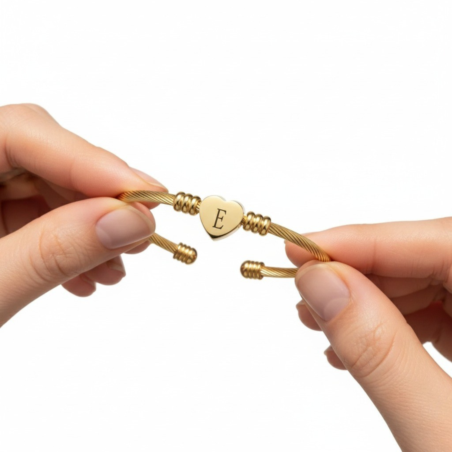 Expresse o seu estilo com elegância graças a esta pulseira refinada com uma inicial gravada num coração de aço inoxidável.